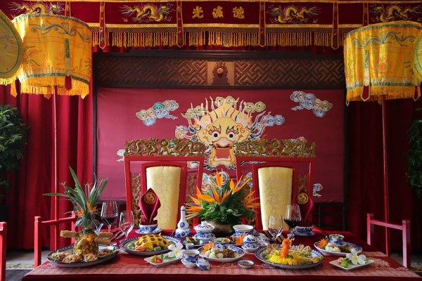 Du khách muốn thưởng thức ẩm thực theo phong cách hoàng gia có thể trải nghiệm Bữa tiệc Cung đình (The Imperial Feast) tại nhà hàng Le Parfum. Trong trang phục hoàng gia, thực khách sẽ được quay ngược thời gian trở về triều đại nhà Nguyễn để thưởng thức bữa tiệc tối với những món ăn từng được phục vụ cho gia đình hoàng tộc. Không gian bữa tiệc được bài trí theo phong cách hoàng gia gồm có bàn ăn chính được bày biện cho vua và hoàng hậu cùng bàn tiệc cho các vị quan đầu triều. Ban nhạc truyền thống với những bản nhạc và bài hát cung đình sẽ phục vụ thực khách trong suốt bữa tiệc.