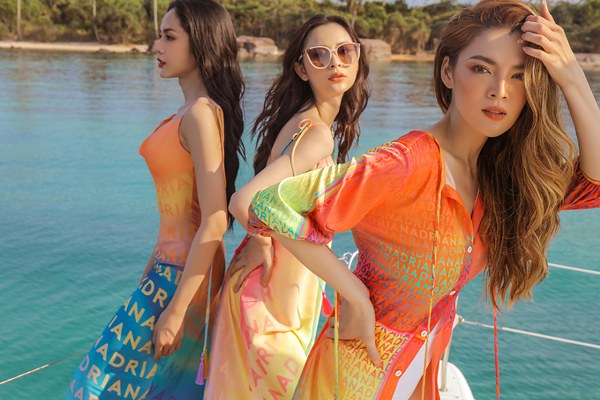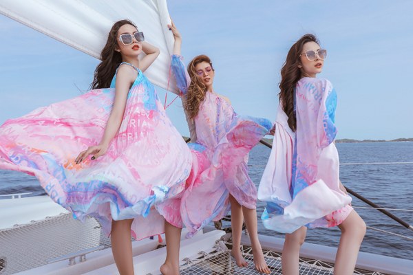Trân Đài, Mỹ Kỳ, Tường Vy khoe dáng trên du thuyền để giới thiệu các mẫu trang phục đi biển của nhà thiết kế Adrian Anh Tuấn.