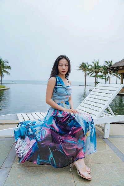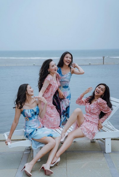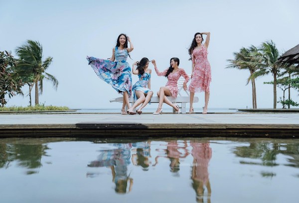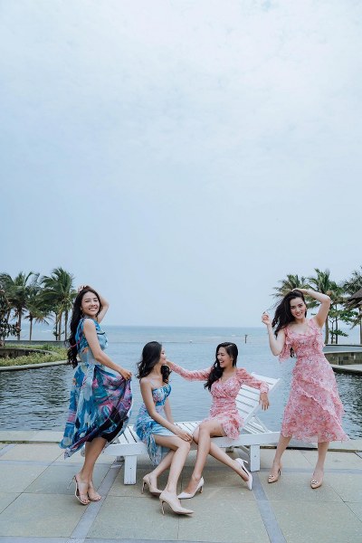 Diễn viên Trang Nhung diện váy hoa khoe vẻ trẻ trung không kém ba cô cháu gái tuổi đôi mươi khi đi nghỉ dưỡng ở Quảng Bình.