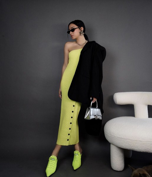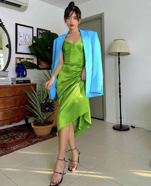 Trang phục tông xanh nổi bật, màu neon hay sắc vàng hợp xu hướng đều được nhiều sao Việt lăng xê.