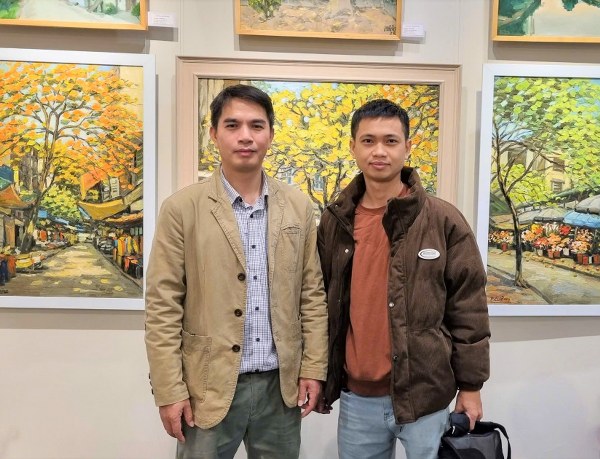 Họa sĩ Phạm Kiên Cường (trái) và bạn