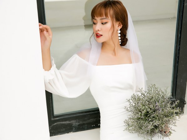 Để ton-sur-ton với váy cưới minimalist, bạn nên chọn tone trang điểm và kiểu tóc phù hợp phong cách
