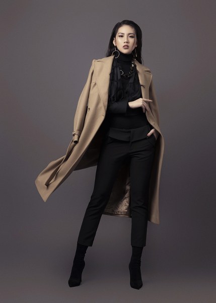 Giải vàng Siêu mẫu Việt Nam 2018 trông hiện đại trong loạt trang phục phù hợp với tiết trời se lạnh.