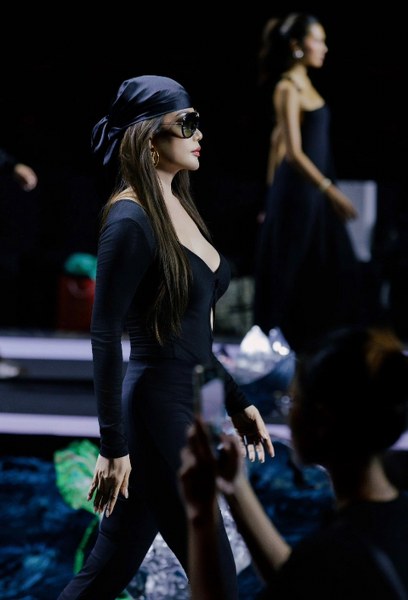 Trong ảnh, Trương Ngọc Ánh trình diễn trang phục ôm sát tôn dáng, kết hợp khăn trùm đầu và kính râm, toát lên vẻ cá tính và quyến rũ.