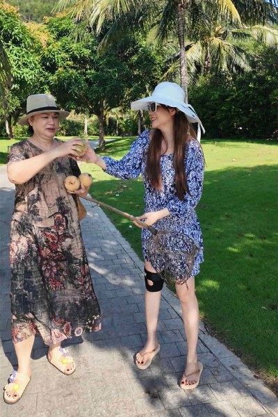 Trương Ngọc Ánh hạnh phúc vì có nhiều thời gian ở bên mẹ. Tuổi 48, sau biến cố tài chính, chị trân trọng phút bình yên trong cuộc sống, đưa mẹ đi chơi, ăn món ngon và cùng bà bơi lội, hái xoài.