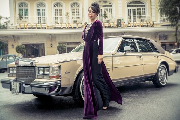 Vẻ đẹp quý phái của phụ nữ Sài Gòn xưa được diễn viên Trương Nhi tái hiện trong bộ ảnh áo dài bên xe cổ.