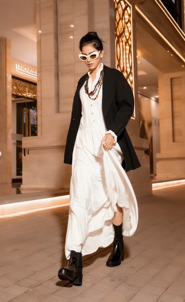 Trương Thị May sử dụng phụ kiện hàng hiệu để tăng sức hút cho những set đồ dạo phố.