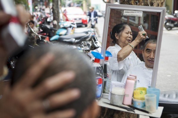 Một ngày, tiệm làm tóc vỉa hè đón vài ba người khách. Họ thường là những khách hàng lớn tuổi hoặc nếu khách hàng trẻ, họ chọn lối sống hơi cổ điển, yêu những câu chuyện vỉa hè.