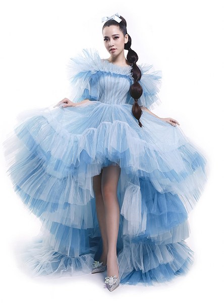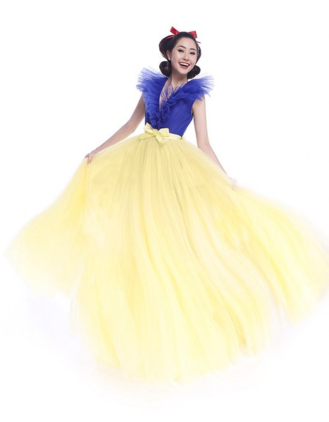 Diễn viên Tường Vi và ca sĩ Khổng Tú Quỳnh có dịp sắm vai những nhân vật trong truyện cổ tích khi diện các thiết kế của Nguyễn Minh Công.