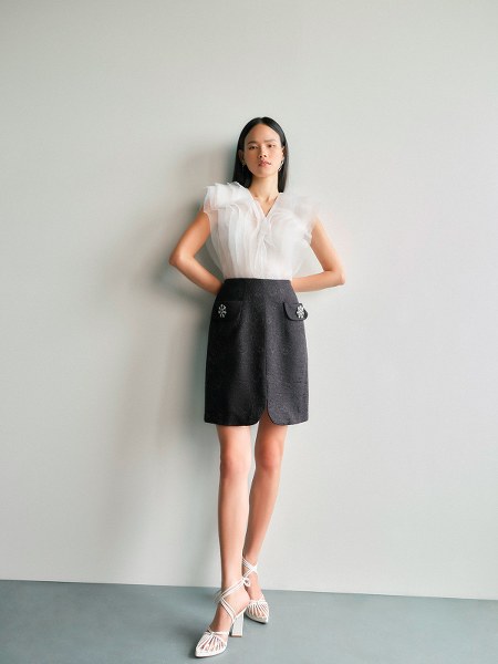 Người mẫu Tuyết Lan thể hiện các thiết kế mùa xuân của nhà mốt Lê Thanh Hòa.