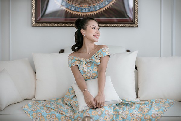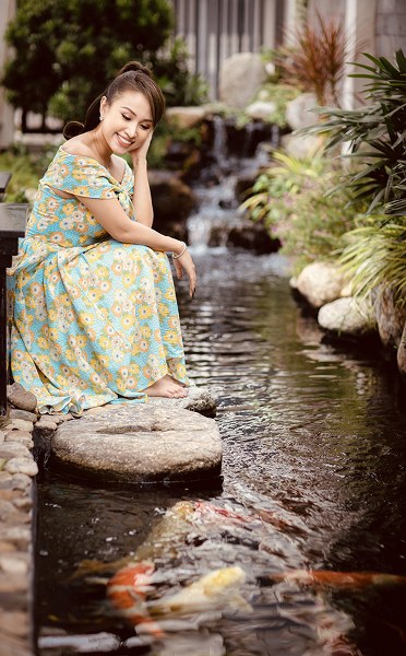 Vân Hugo được chồng ghi lại những khoảnh khắc hạnh phúc trong căn biệt thự trắng của hai người tại TP HCM.