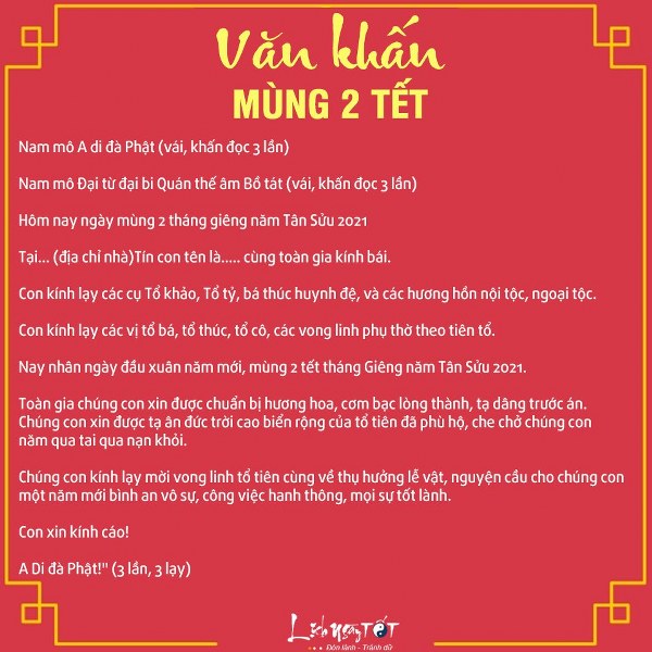 Dưới đây là bài văn khấn ngày mùng 2 Tết, bạn đọc có thể tham khảo: