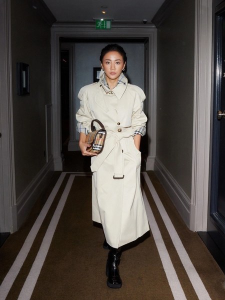 Văn Mai Hương dự London Fashion Week hồi tháng 9/2025. Cô chuẩn bị kỹ lưỡng về trang phục, lối makeup và kiểu tóc để phù hợp tinh thần nhà mốt. Ca sĩ diện trench coat biểu tượng của Burberry, phối boots da cổ cao và túi Highlands Crossbody.