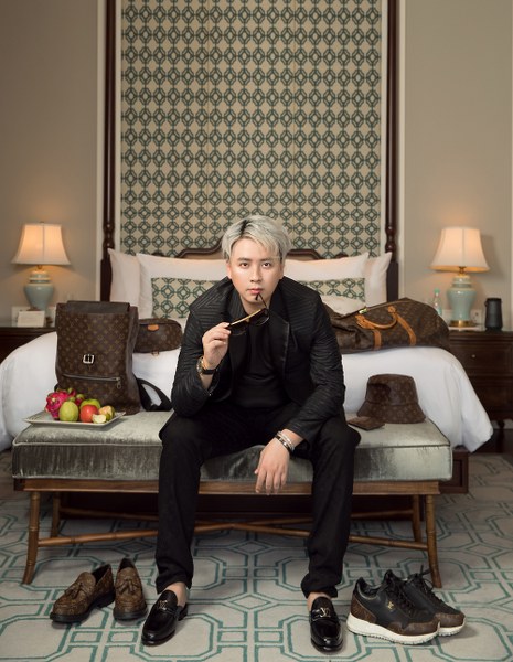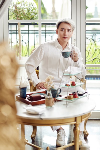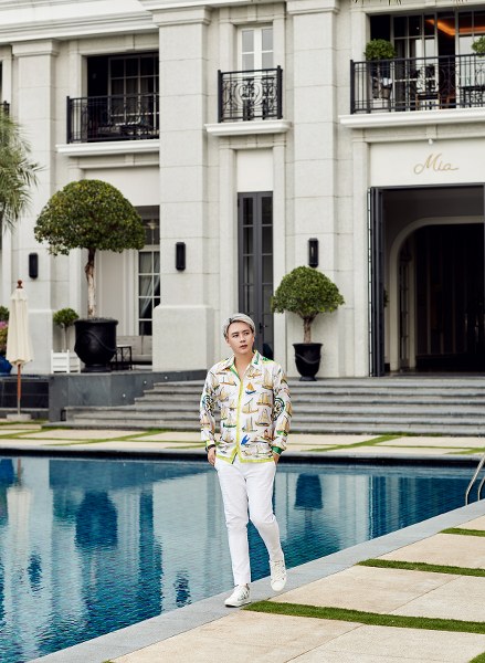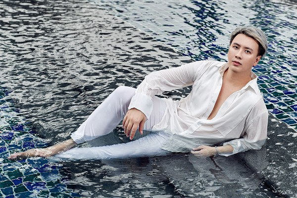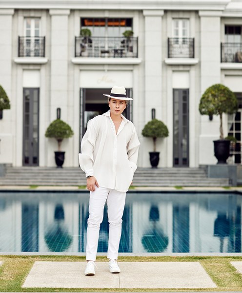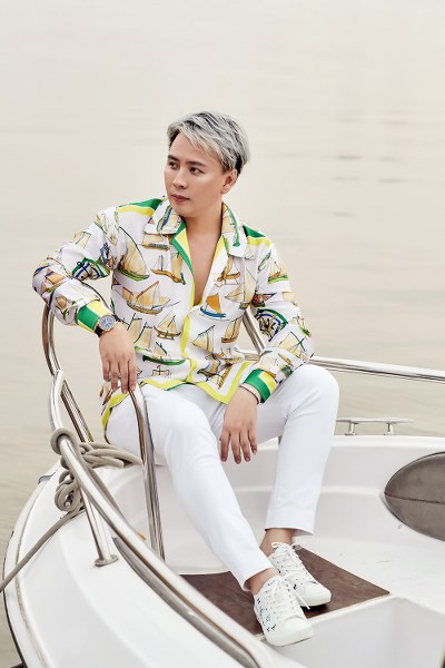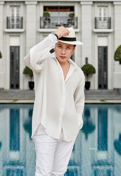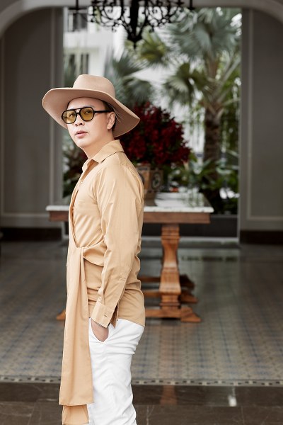 Văn Thành Công tự làm mẫu để giới thiệu các mẫu sơ mi, suit dành cho tiệc mùa hè.