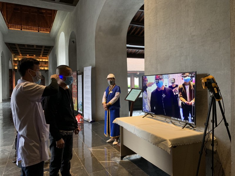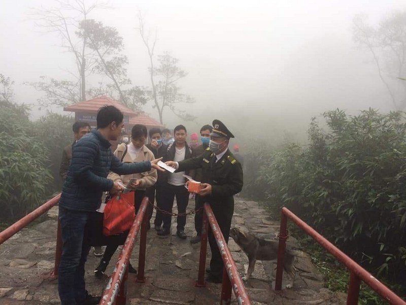 Công tác phòng dịch tại Yên Tử – Mọi khách hàng trước khi vào đều phải đi qua máy quét thân nhiệt tự động, kiểm tra thân nhiệt, rửa tay sát trùng và cần đeo khẩu trang