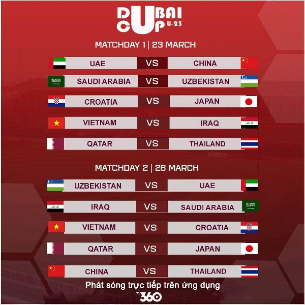 U23 Dubai Cup 2022- giải đấu được ví như vòng chung kết U23 châu Á mở rộng, quy tụ 9 đội bóng trẻ hàng đầu châu Á cùng "đàn em" của đương kim Á quân World Cup, U20 Croatia. Tại đây, U23 Việt Nam góp mặt 2 trận gặp Iraq vào 23/3 và Croatia vào 26/3. Sau 2 trận này, U.23 Việt Nam còn đá 1 trận nữa ngày 29/3 với đối thủ liền kề trên bảng xếp hạng dựa trên kết quả thi đấu 2 trận vừa qua để tính thứ hạng tại giải đấu.