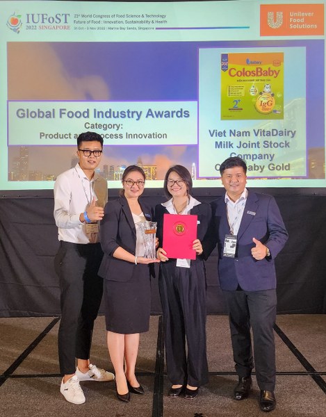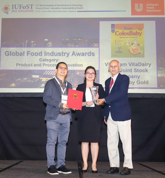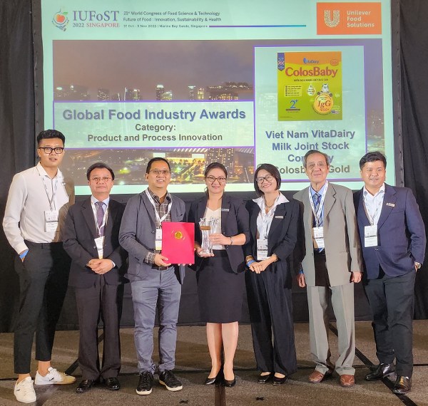 Sản phẩm dinh dưỡng tăng cường miễn dịch cho trẻ ColosBaby Gold (Công ty Cổ phần Sữa VitaDairy Việt Nam) là sản phẩm duy nhất nằm trong danh mục sữa được Hội Khoa học và Công nghệ Lương thực Thực phẩm Việt Nam (VAFoST) lựa chọn từ các thực phẩm tốt nhất của Việt Nam theo một quy trình chặt chẽ để tiến cử là đại diện của Việt Nam tham gia dự thi Giải thưởng của IUFoST 2022.