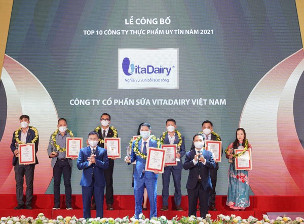 Ngày 25/11, VitaDairy được xướng tên tại Lễ Vinh danh Top 10 Công ty uy tín ngành Thực phẩm – Đồ uống năm 2021 diễn ra tại Hà Nội. Đây là giải thưởng uy tín được xây dựng theo các nguyên tắc khoa học và khách quan do Vietnam Report đánh giá dựa trên các tiêu chí về Năng lực tài chính, uy tín truyền thông và quan trọng nhất là sự hài lòng của khách hàng đối với thương hiệu và sản phẩm.