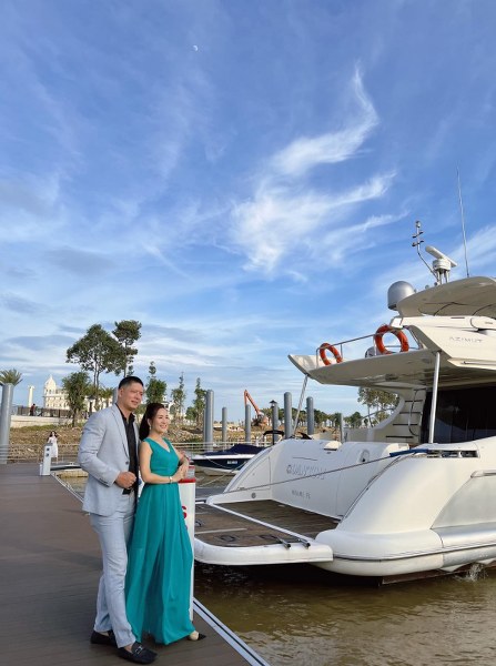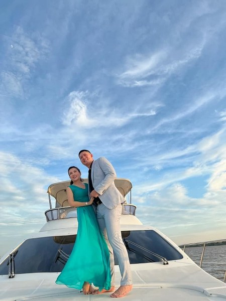 Diễn viên Bình Minh và bà xã Anh Thơ có những khoảnh khắc tình tứ trên du thuyền ở Biên Hòa, Đồng Nai, vài ngày trước.
