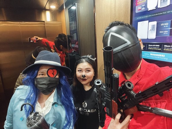 Cả nhóm cùng chơi trò tách kẹo đường gây sốt trong phim Squid Game. Ảnh: Đỗ Hoàng Vũ