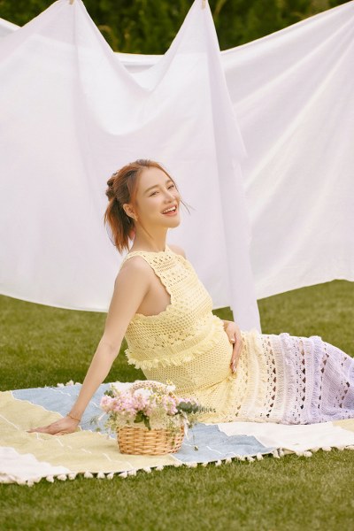 Gia đình nghệ sĩ chọn trang phục cùng tông màu vàng nhạt, chụp tự nhiên và đơn giản. Nhã Phương muốn bộ ảnh kỷ niệm mang lại cảm giác ấm áp, bình yên cũng như thân thuộc, gần gũi.