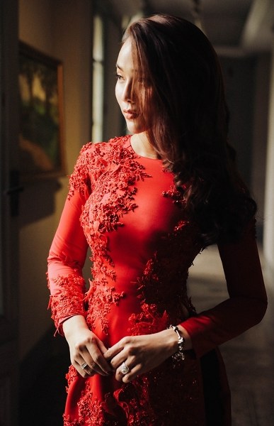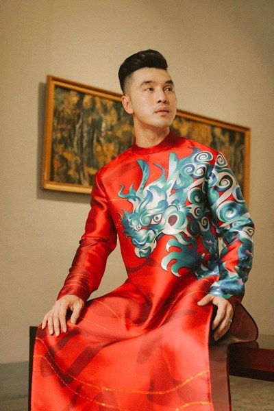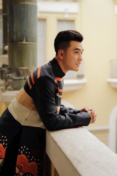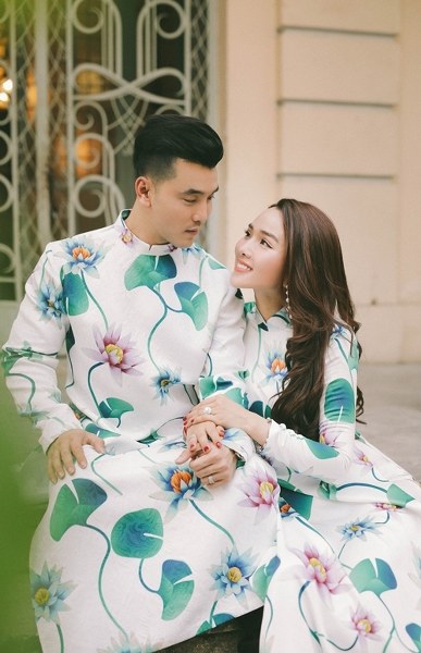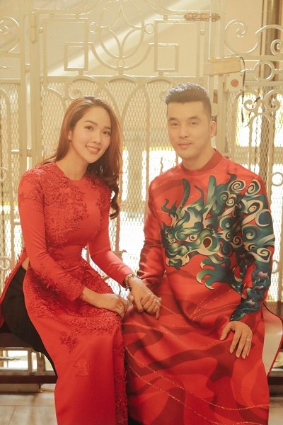 Ca sĩ Ưng Hoàng Phúc cùng bà xã Kim Cương giới thiệu một số mẫu áo dài của NTK Thuỷ Nguyễn dành cho \"nam thanh nữ tú\" du xuân.