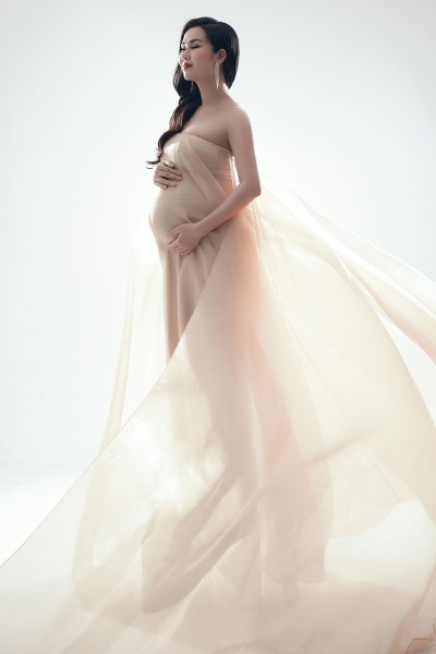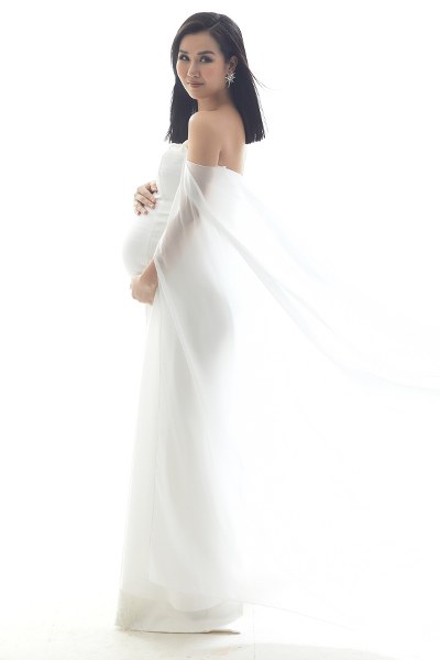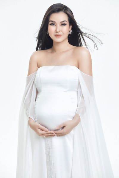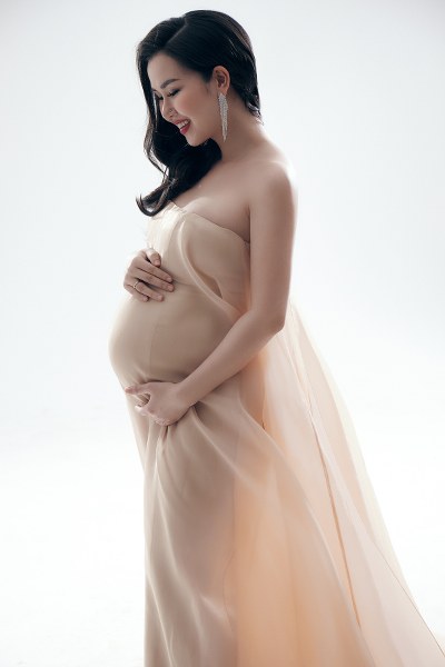 Võ Hạ Trâm mặc các mẫu đầm bầu được thiết kế riêng với phom ôm sát gợi cảm nhưng vẫn thoải mái cho phụ nữ mang thai.