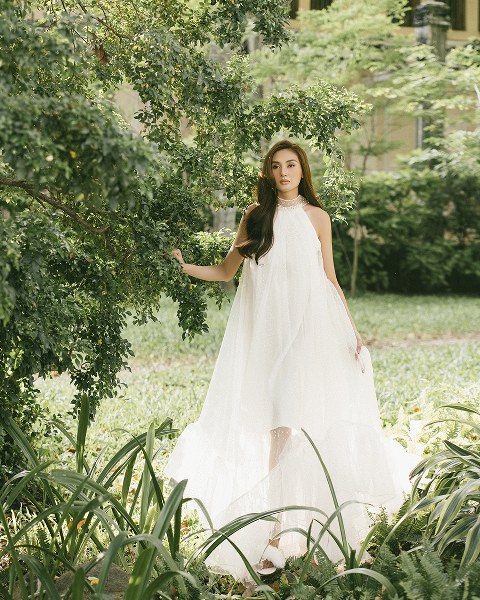 Thay vì phong cách cá tính như trước đây, siêu mẫu Võ Hoàng Yến diện loạt đầm trắng phong cách nữ tính, dịu dàng.