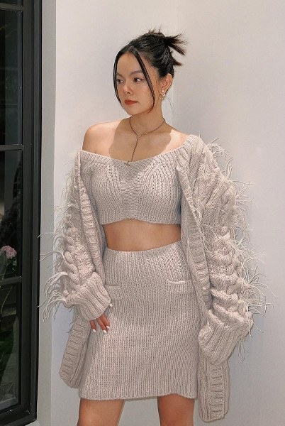 Lúc mới sinh em bé bốn tháng, Phạm Quỳnh Anh gây bất ngờ về diện mạo với "cây" đồ len gồm crop top phối chân váy ôm sát trong chuyến nghỉ dưỡng ở Đà Lạt.