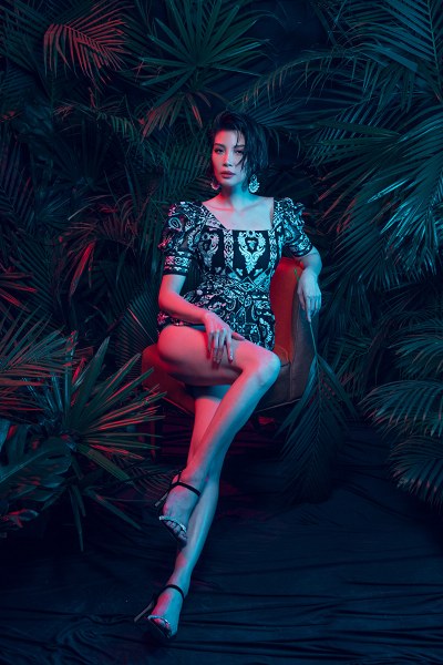 Cựu người mẫu khai thác lợi thế vóc dáng thon gọn tuổi 42 qua những set đồ gợi cảm.