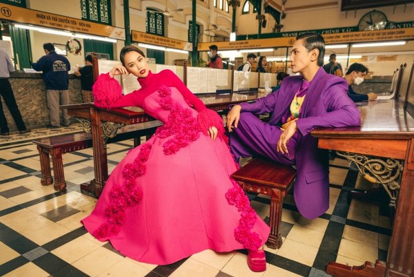 Người mẫu Đặng Hoàng Tâm Như và Nguyễn Bảo Sơn chụp ảnh ở Bưu điện Tp.HCM - công trình kiến trúc nổi tiếng có tuổi đời hơn 130 năm.