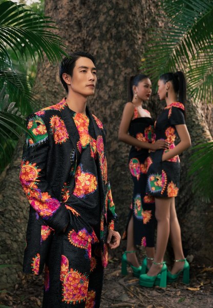 Đối với trang phục nam giới, Vũ Ngọc và Son giữ phom dáng suit cơ bản, cổ điển cùng những họa tiết mảng màu rực sắc, tạo vẻ phóng khoáng mà không kém phần lịch lãm.