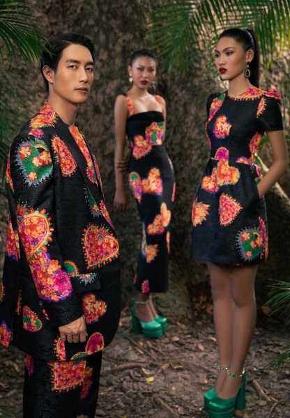 Bộ sưu tập chọn chất liệu gấm taffeta, voan lụa làm chủ đạo. Họa tiết hoa ngũ sắc cách điệu - từng được giới thiệu trong show diễn Ký ức tuổi thơ - được thổi làn gió mới khi lồng ghép cùng chi tiết trái tim. Hoa ngũ sắc rực rỡ vốn để truyền tải thông điệp về tình yêu nồng nàn và sự lãng mạn.