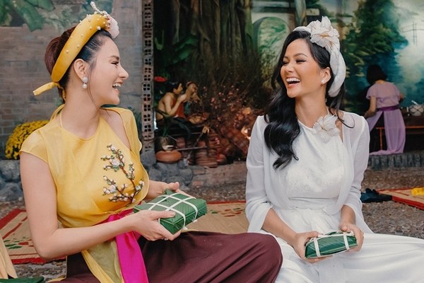 Vũ Thu Phương tổ chức buổi gói bánh chưng đón Tết Nguyên đán, mời các Hoa hậu H\'Hen Niê, Giáng My, Khánh Vân tham dự.