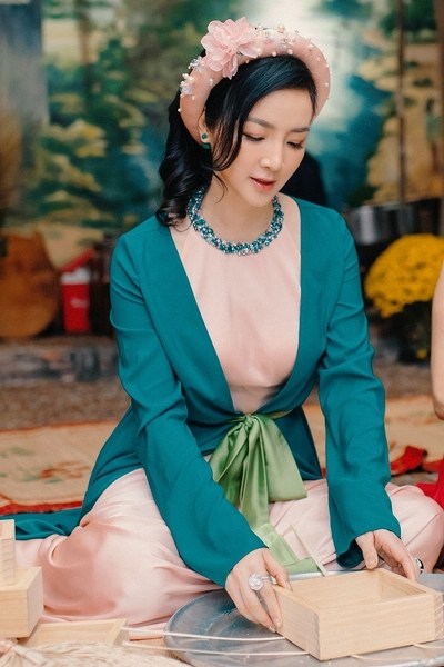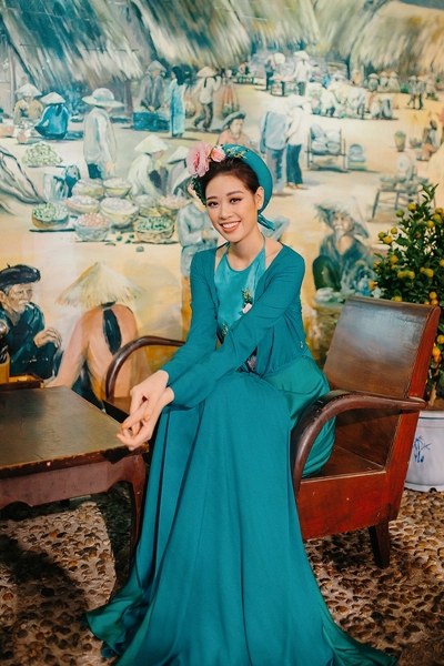 Hoa hậu Khánh Vân diện áo yếm duyên dáng