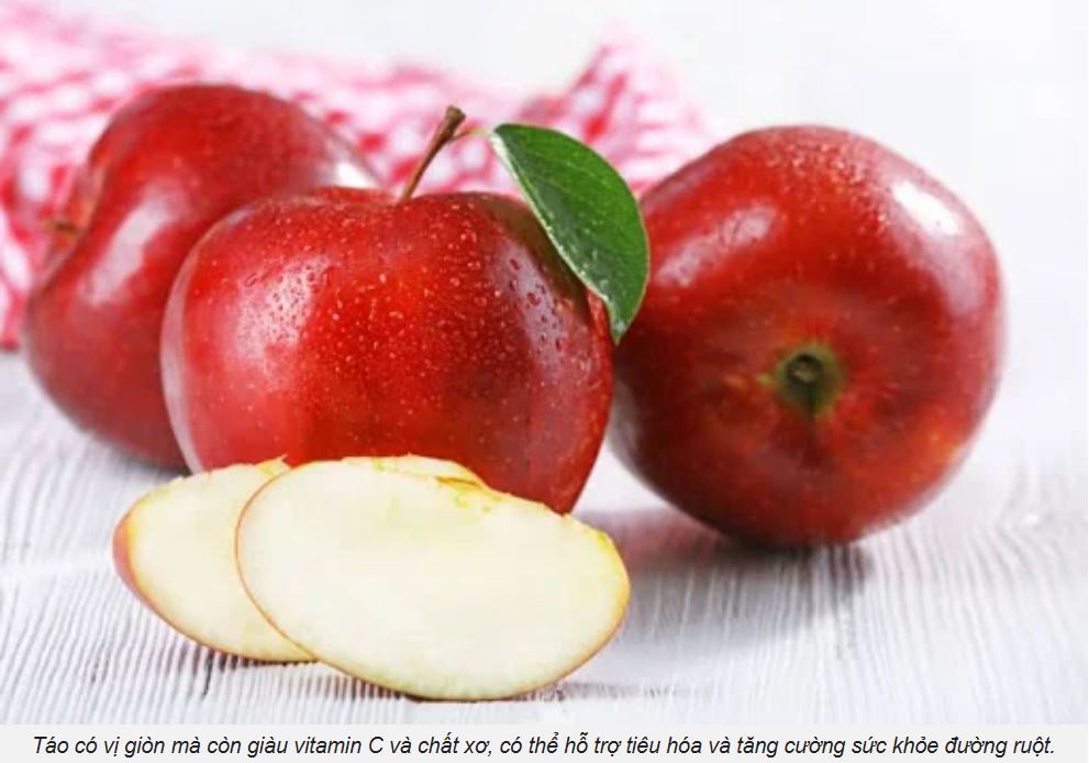 Táo có vị giòn mà còn giàu vitamin C và chất xơ, có thể hỗ trợ tiêu hóa và tăng cường sức khỏe đường ruột.