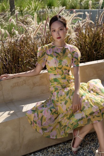 Đầm xòe họa tiết hoa mang đến vẻ ngoài nhẹ nhàng, thanh lịch mà tinh tế.