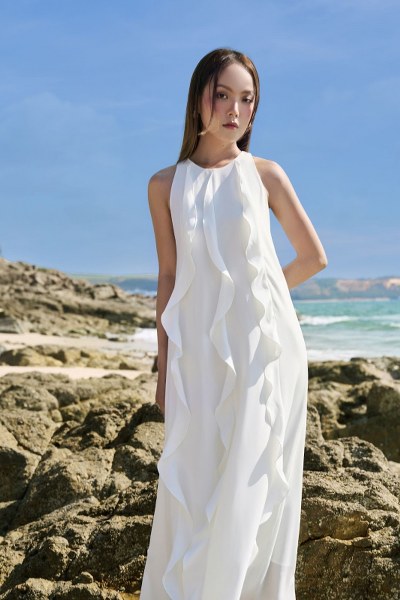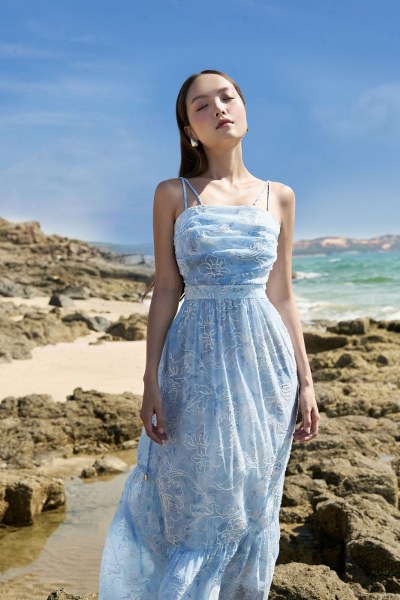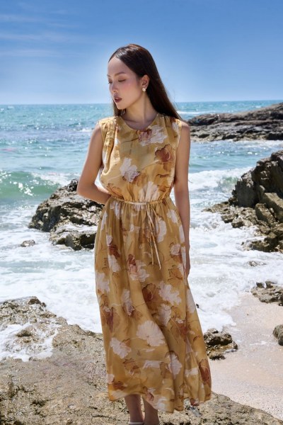 Lấy cảm hứng từ hương sắc của biển trên nền họa tiết hoa trắng nhẹ nhàng, thiết kế đầm mang đến âm hưởng tươi mát, năng động, giúp nàng tận hưởng trọn vẹn kỳ nghỉ hè dạt dào cảm xúc. Thiết kế lựa chọn kiểu dáng maxi quyến rũ. Đầm maxi là sự lựa chọn lý tưởng khi đi biển hoặc trong các buổi dạo phố mùa hè, tạo nên phong cách năng động và tự nhiên.