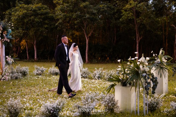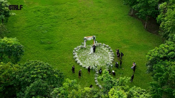 Dưới ánh hoàng hôn lãng mạn, Fabo Nguyễn hồi hộp đợi Vân Tiny đang hoang mang trong chiếc áo cưới tinh khôi bước đến. Khoảnh khắc nhìn thấy nhau, cả hai cũng không kìm được giọt nước mắt xúc động, hạnh phúc.